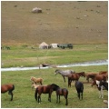 Kirghize. Les yourtes peuvent avoir plusieurs étages, mais ces dernieres sont très rares aujourd'hui, car complexe à monter. Les yourtes utilisées par les nomades sont de taille plus modeste, car plus rapide à monter et à démonter. Une yourte se transporte sur un chameau, ou sur deux chevaux. Le nom kirghize de la yourte est 'Bozu'. Le terme yourte est utilisé en Russe et dans les autres langues. Lors de nos séjours, vous passerez quelques nuits dans les yourtes, vous pourrez tester leur confort. Il est également possible de partager la vie des nomades, durant quelques semaines, dans une yourte qui vous sera reservée. |